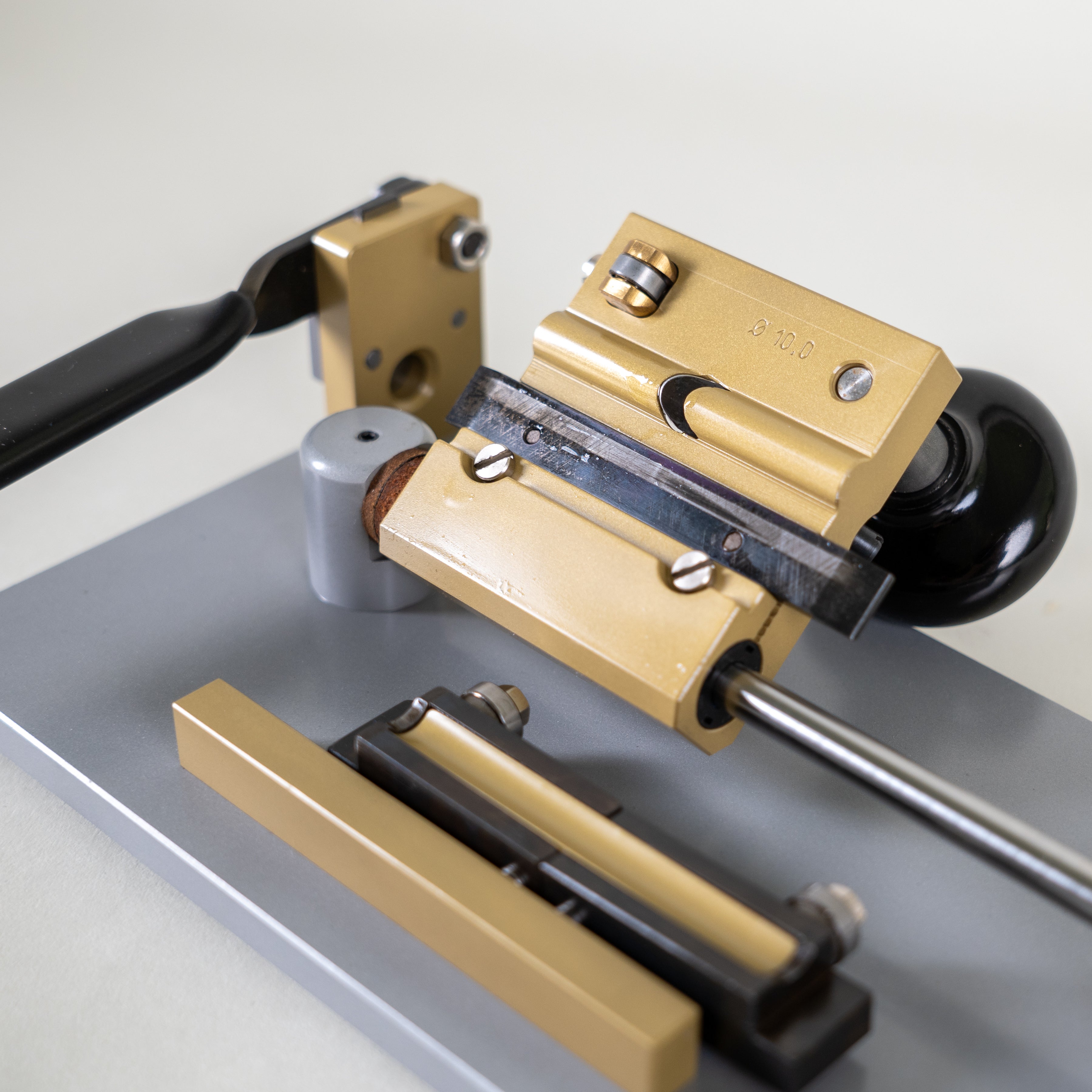 Each gouging machine is equipped with a built-in reed blank cutter.
